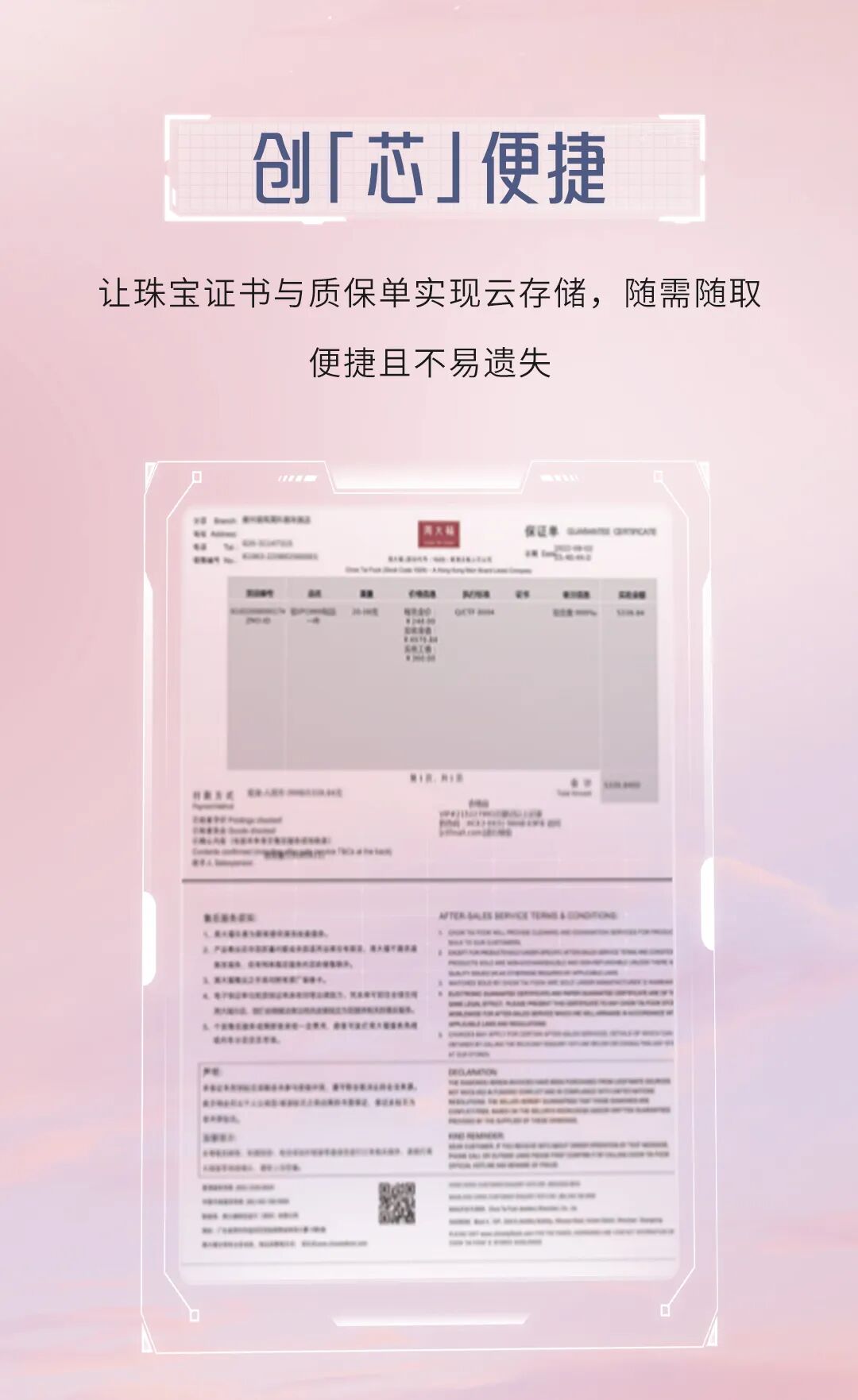 周大福品牌介绍:周大福珠宝集团有限公司;香港联交所股份代号:1929;于2011年12月在香港联合交易所主板上市,以成为全球最值得信赖的珠宝集团为愿景。集团标志性品牌「周大福」创立于1929年,广获认同为信誉及正货的象征,并以产品设计、品质与价值而闻名。集团及其标志性品牌的成功,从过去的悠久历史,体现出对创新和工艺的持久坚持,以及恒久抱持的核心价值「真诚•永恒」。