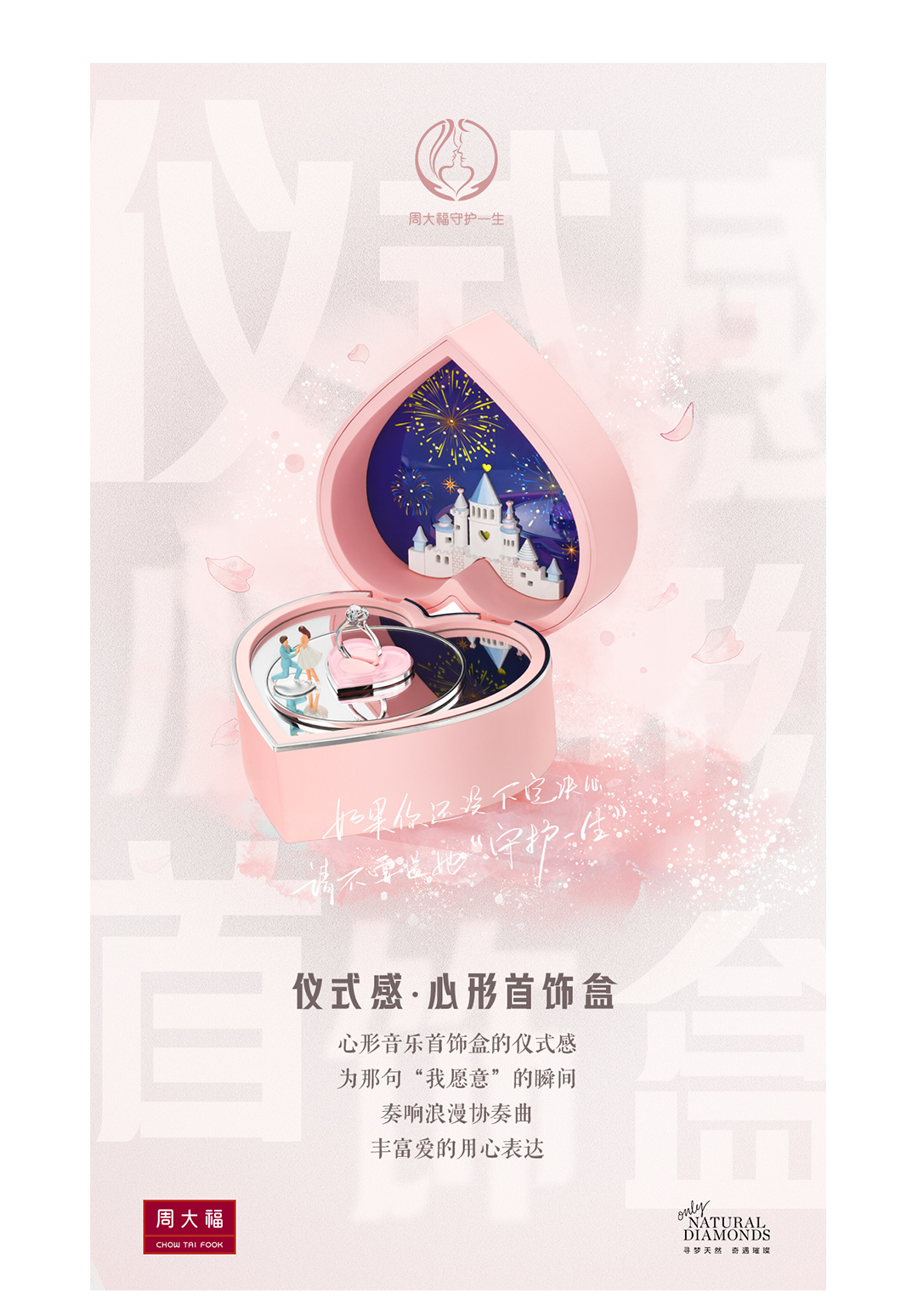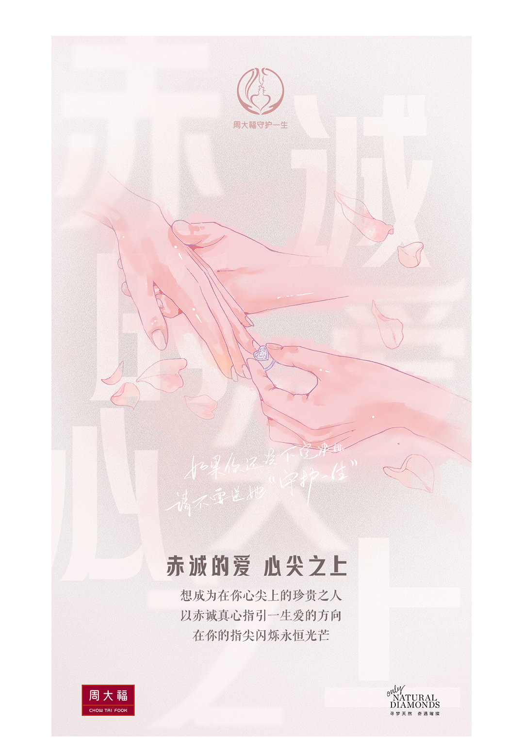 周大福品牌介绍:周大福珠宝集团有限公司;香港联交所股份代号:1929;于2011年12月在香港联合交易所主板上市,以成为全球最值得信赖的珠宝集团为愿景。集团标志性品牌「周大福」创立于1929年,广获认同为信誉及正货的象征,并以产品设计、品质与价值而闻名。集团及其标志性品牌的成功,从过去的悠久历史,体现出对创新和工艺的持久坚持,以及恒久抱持的核心价值「真诚•永恒」。
