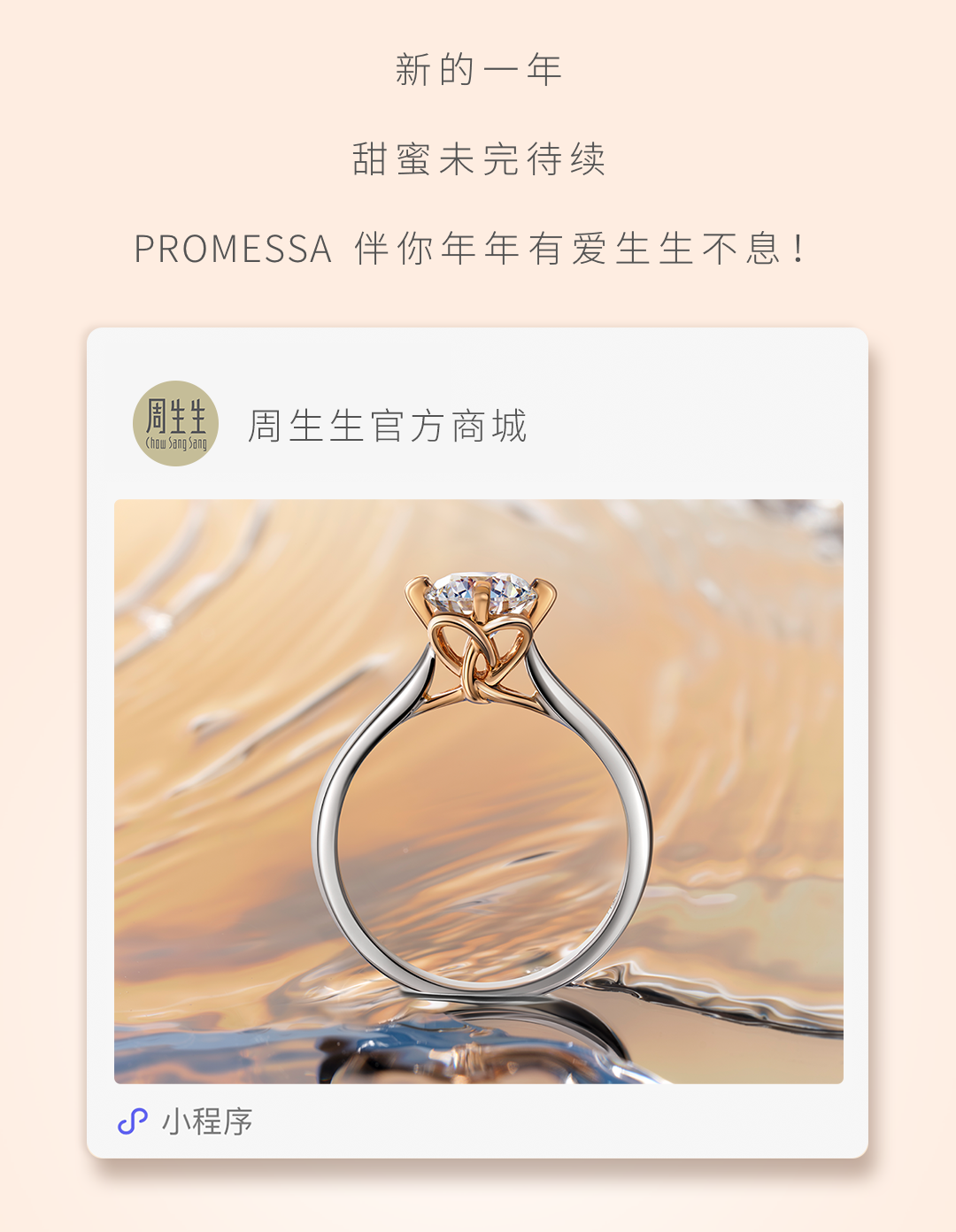 周生生 (Zhou Shengsheng) 是一个中国的珠宝品牌,成立于1999年。该品牌以其独特的设计和优质的产品赢得了广泛的认可,并在国内外市场上享有良好的声誉。 周生生的产品系列包括黄金首饰、翡翠首饰、钻石首饰等。这些产品都是由经验丰富的设计师和工匠手工制作,以确保高质量和精细的工艺。 此外,周生生还注重环保和社会责任,通过合作与当地社区和环保组织来实现这一目标。 总的来说,周生生是一个兼具传统工艺和创新设计的珠宝品牌,为客户提供高质量、独特的产品体验。
