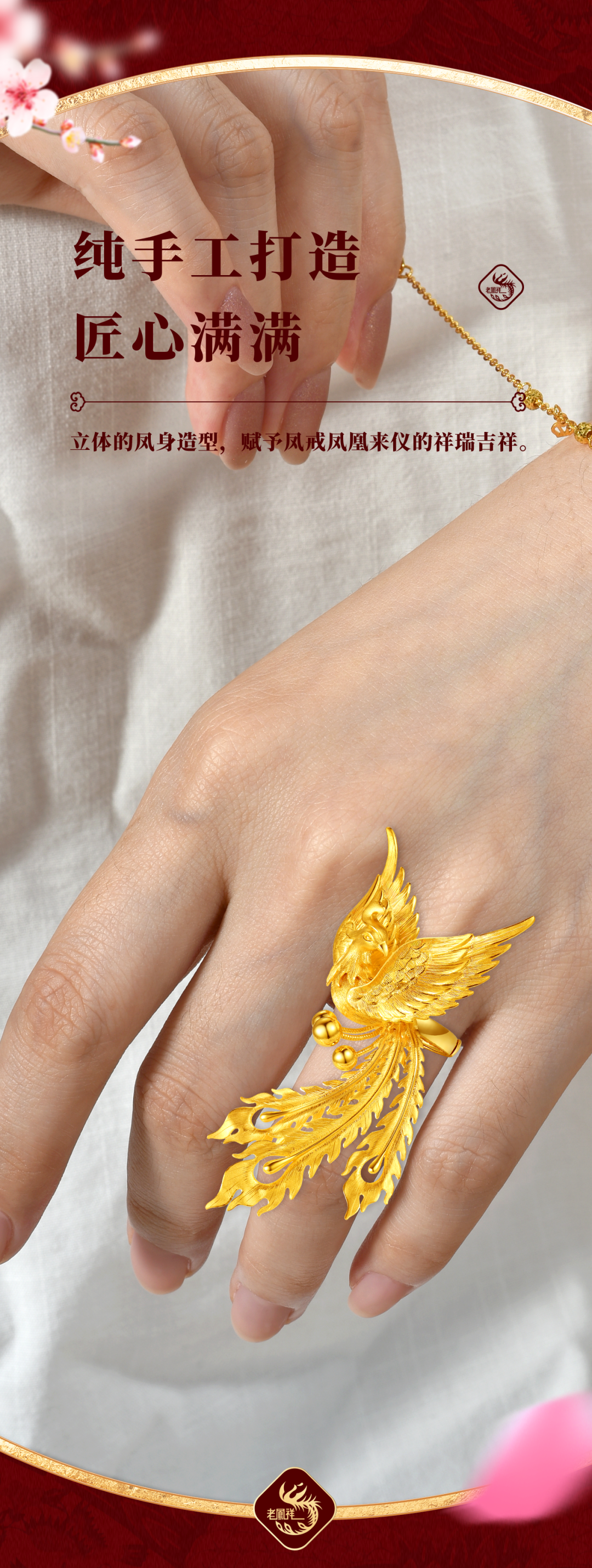 老凤祥 (Laofengxiang) 是一个中国的珠宝品牌,成立于1956年。该品牌是中国最古老的珠宝品牌之一,以其长期以来对传统工艺的执着和对创新设计的探索而受到广泛赞誉。 老凤祥的产品系列包括黄金首饰、翡翠首饰、钻石首饰等。这些产品都是由经验丰富的设计师和工匠手工制作,以保证高质量和精细的工艺。 此外,老凤祥也注重保护中国传统文化,在其产品中融入了中国传统文化的元素,使其具有独特的文化气息。 总的来说,老凤祥是一个兼具传统工艺和创新设计的珠宝品牌,为客户提供高质量、独特的产品体验。