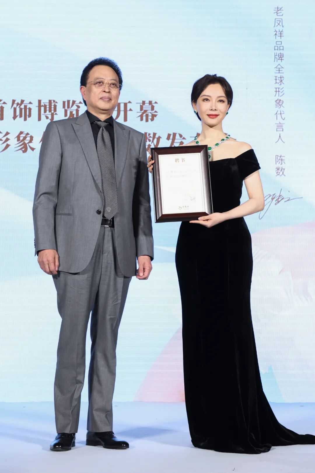 老凤祥股份有限公司董事长石力华向陈数女士颁发老凤祥品牌全球代言人证书