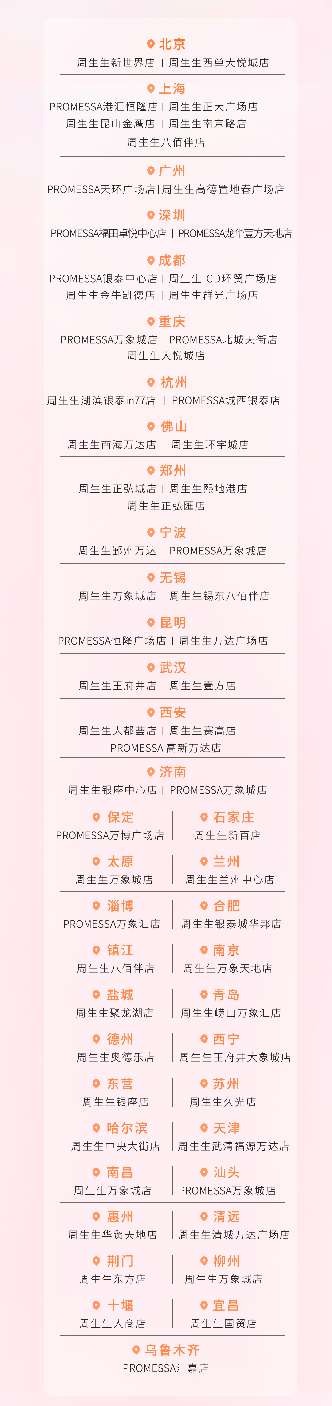 周生生 (Zhou Shengsheng) 是一个中国的珠宝品牌,成立于1999年。该品牌以其独特的设计和优质的产品赢得了广泛的认可,并在国内外市场上享有良好的声誉。 周生生的产品系列包括黄金首饰、翡翠首饰、钻石首饰等。这些产品都是由经验丰富的设计师和工匠手工制作,以确保高质量和精细的工艺。 此外,周生生还注重环保和社会责任,通过合作与当地社区和环保组织来实现这一目标。 总的来说,周生生是一个兼具传统工艺和创新设计的珠宝品牌,为客户提供高质量、独特的产品体验。