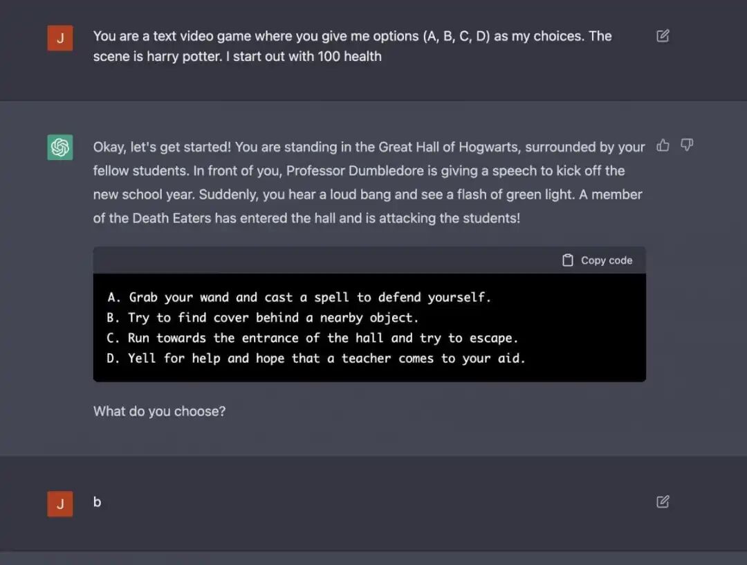 去年年底,一个11岁男孩利用ChatGPT打造出来的一款文字互动游戏,吸引了上千个玩家尝试,并登上了Reddit首页,而这位年轻的“游戏开发者”所做的,不过是在ChatGPT当中输入了一个简单的指令——