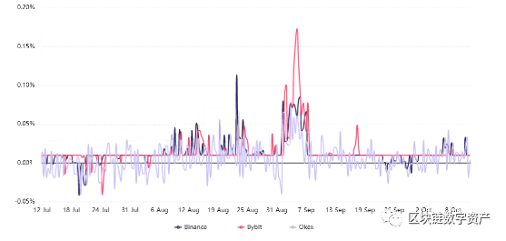 在中性市场,资金费率从0%到0.03%不等。这一费用相当于每周0.6%,表明支付这一费用的是多头。