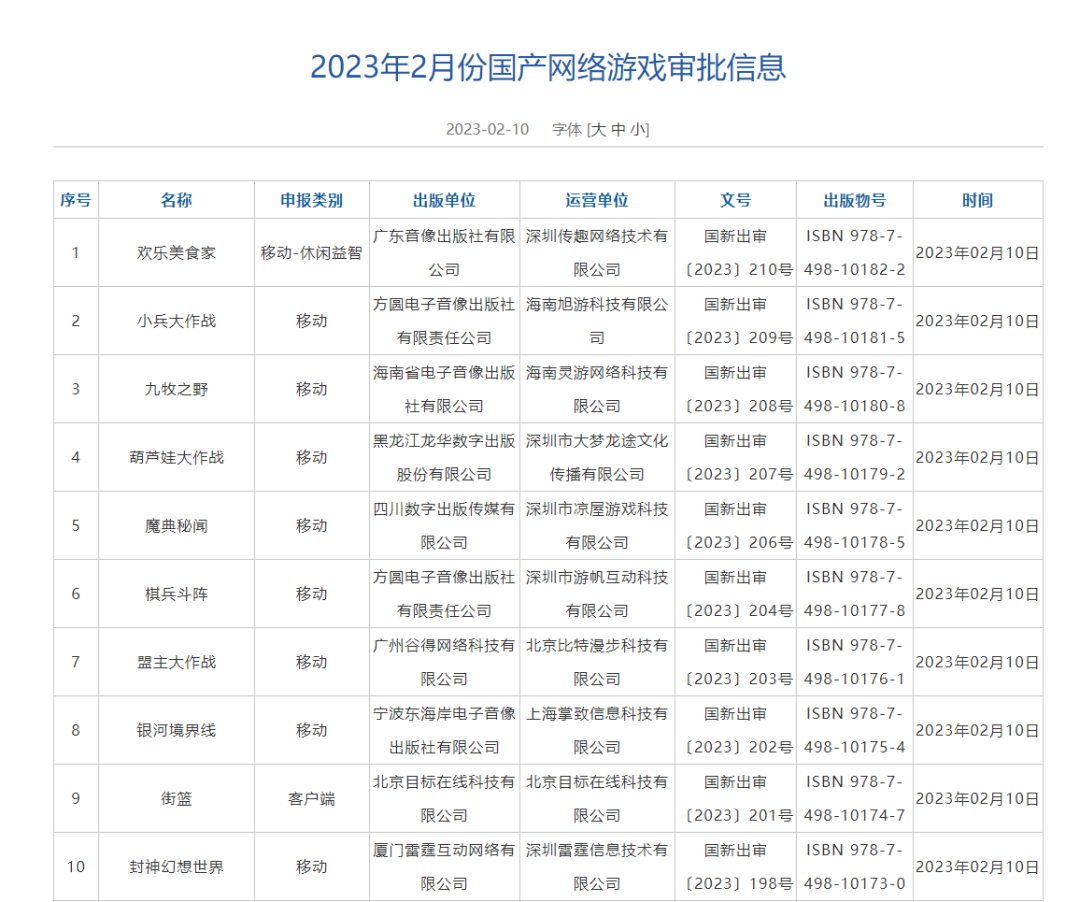 因版面限制,全部版号信息读者们可自行前往国家新闻出版署网站查看
