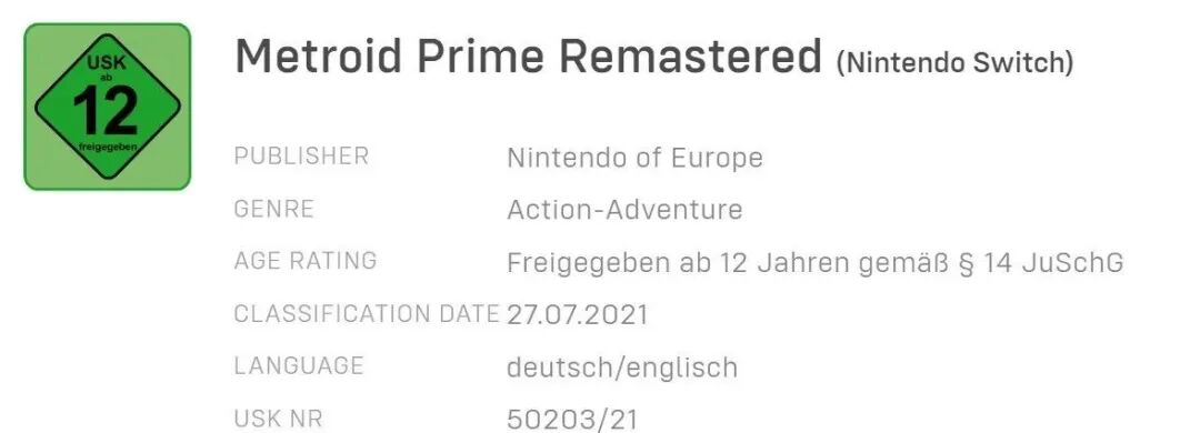 根据德国评级机构显示,《密特罗德 究极 复刻版》早在2021年7月就已经获得评级,比实际发售时间早了18个月。
