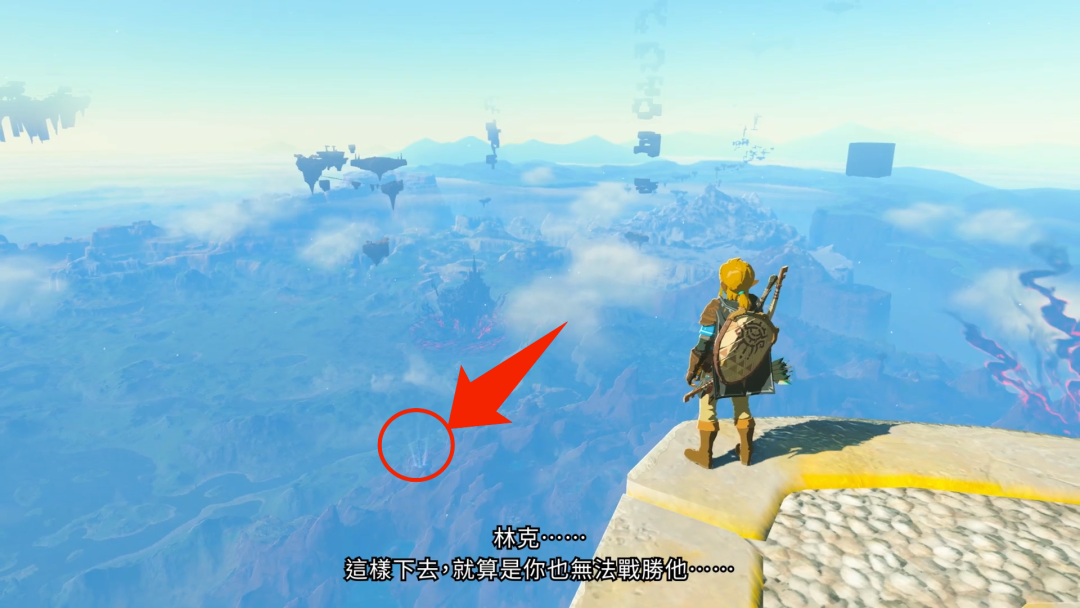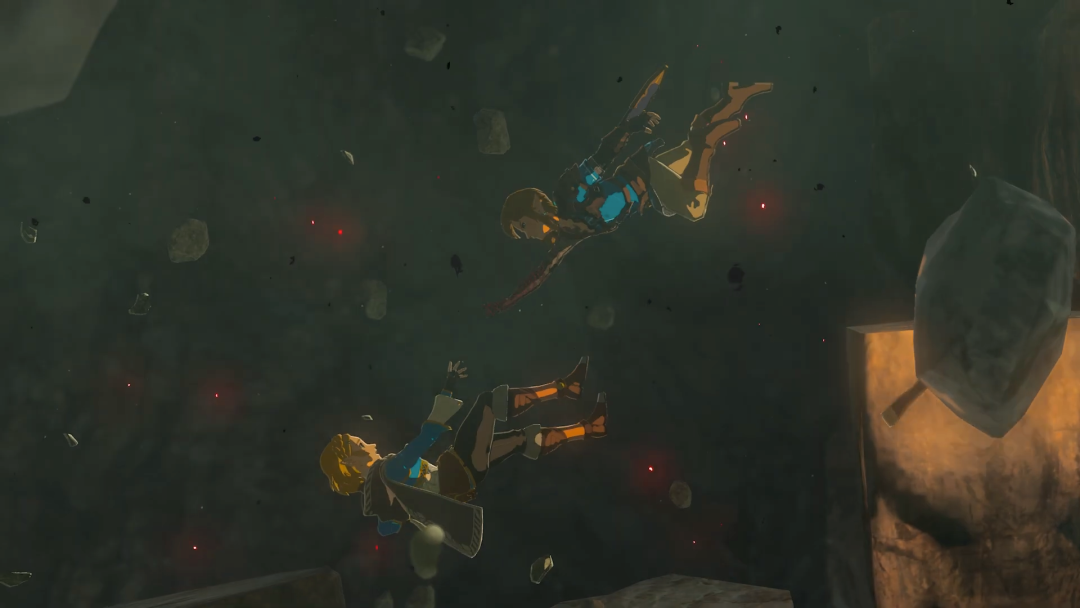 之后灾厄袭击二人,林克丢下大师之剑转头回去抓住坠落中的塞尔达。