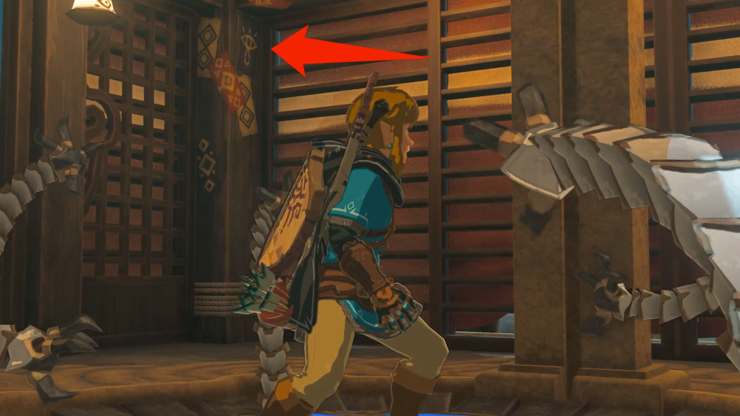 这一幕中,房顶出现了一个守护者,且和《旷野之息》一样看上去饱经风霜。