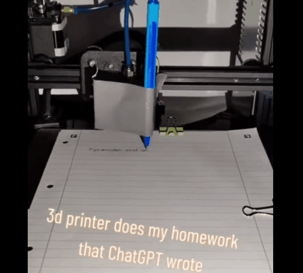 但不知道他们在看到现在已经有学生能够把ChatGPT输出的文本,直接通过3D打印机书写出来后,又会作何感想。