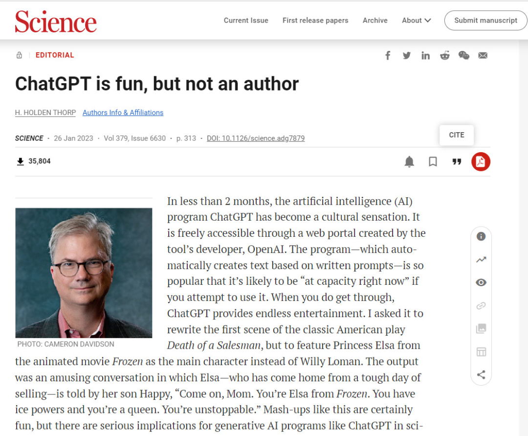 “ChatGPT很有趣,但他无法成为一个作者”