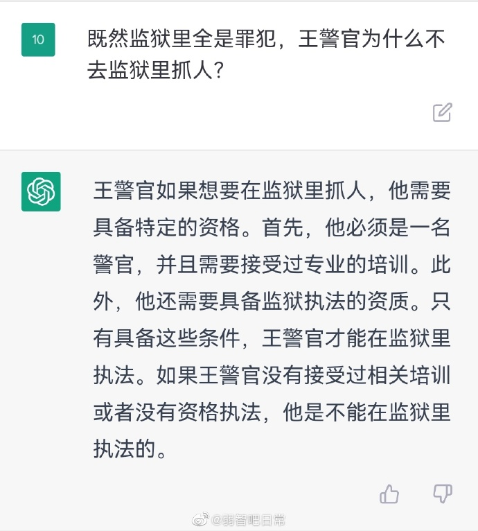 除了方言外,网友们也尝试让ChatGPT理解一些“弱智吧”发言。结果就是,ChatGPT真的开始一本正经地给你介绍这些弱智发言的可行性。