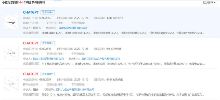 顺带一提,目前在企查查等平台上,已经可以看到国内有数十家公司正在抢注ChatGPT的商标。