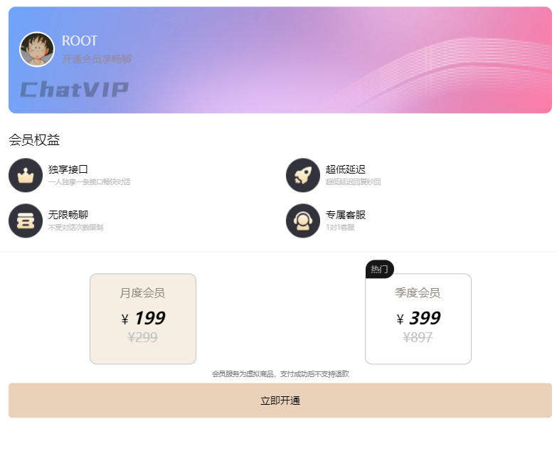 更为离谱的是,一些人在ChatGPT走红后,立马在一些社交平台上,创建了所谓的“ChatGPT中文版”账号。他们冒充自己是官方渠道,将原本免费的ChatGPT聊天改成了会员收费制,赚到了国内AI聊天机器人的第一桶金。