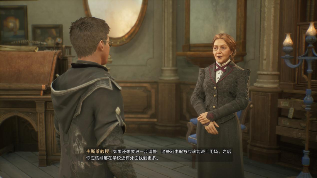 这部分内容在初上手时,的确很有意思。玩家作为一名初入学的五年级学生,对魔法学校里的一切都充满好奇,而为了帮助我们这个中途意外出现的插级生,霍格沃茨的各位教授除了要在课堂上频繁与主角互动外,还要在课后为主角布置额外的作业。