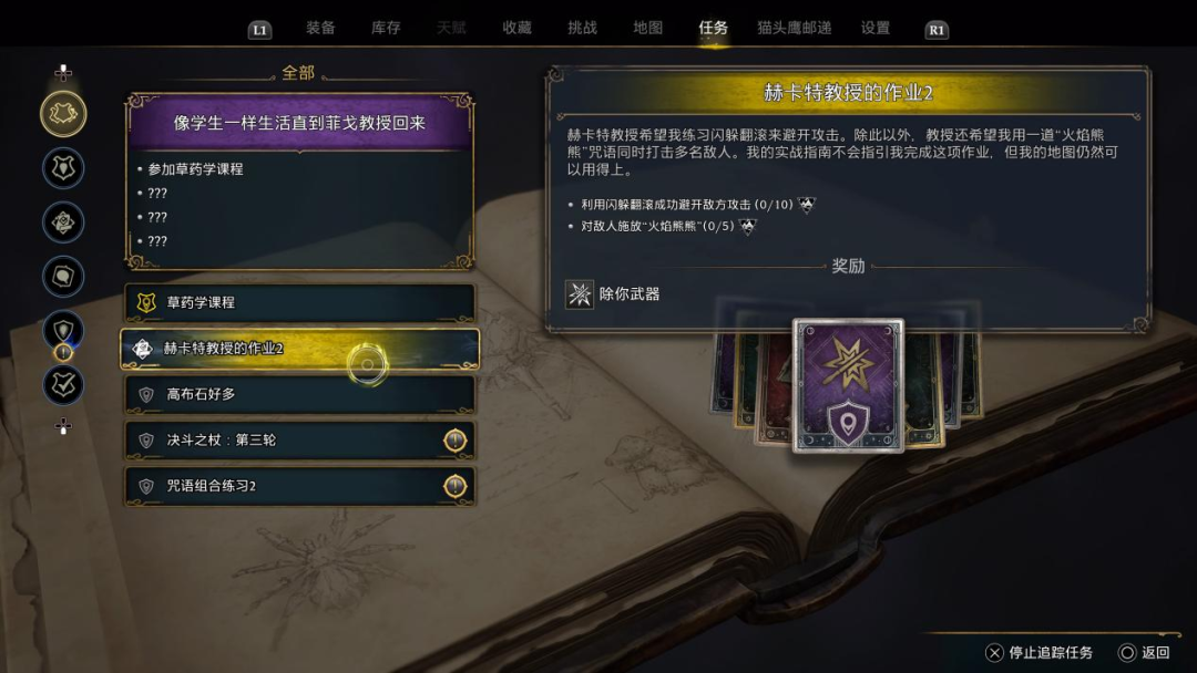 完成作业后可以学到新的咒语