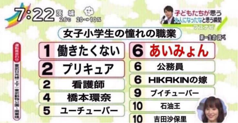 小学女生憧憬的职业:1、不想工作2、光之美少女