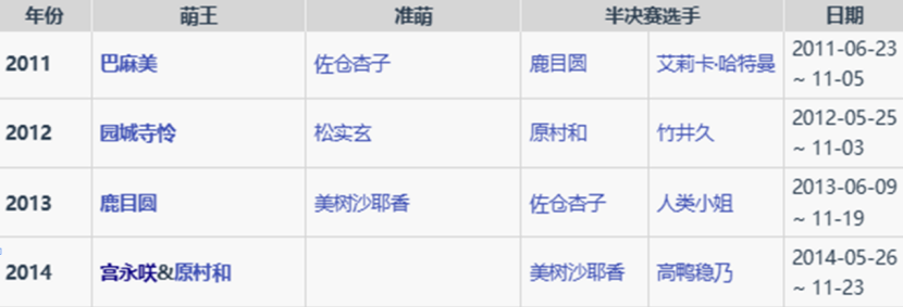 由于《魔法少女小圆》和《天才麻将少女》粉丝群体过于强大,2011年后的“萌王”只会在这两部作品中决出,因此“2ch动画最萌”决定停办