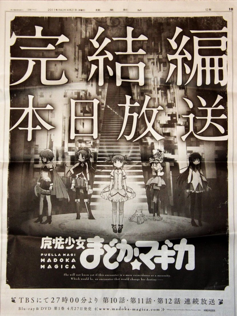最后“311东日本大地震”的发生,给动画的话题度添了一把火。因为大地震,已经进入高潮阶段的《魔法少女小圆》陷入了停播状态,为舆论发酵留下了时间,大家都在讨论大结局将会如何发展,各大媒体争相报道。