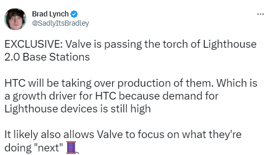 Brad Lynch:HTC 将接手 Lighthouse 2.0 基站的生产