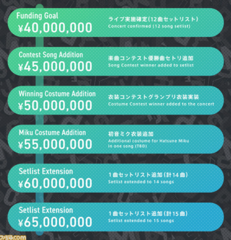 据了解,HATSUNE MIKU EXPO 是虚拟歌手初音未来的世界巡演系列,自 2014年 在雅加达演出开始,在全球 30 个城市共演出了 68 场,2024 年将迎来 10 周年。此次众筹活动将提供从 1000 日元到 600000 日元不等的 16 种菜单。