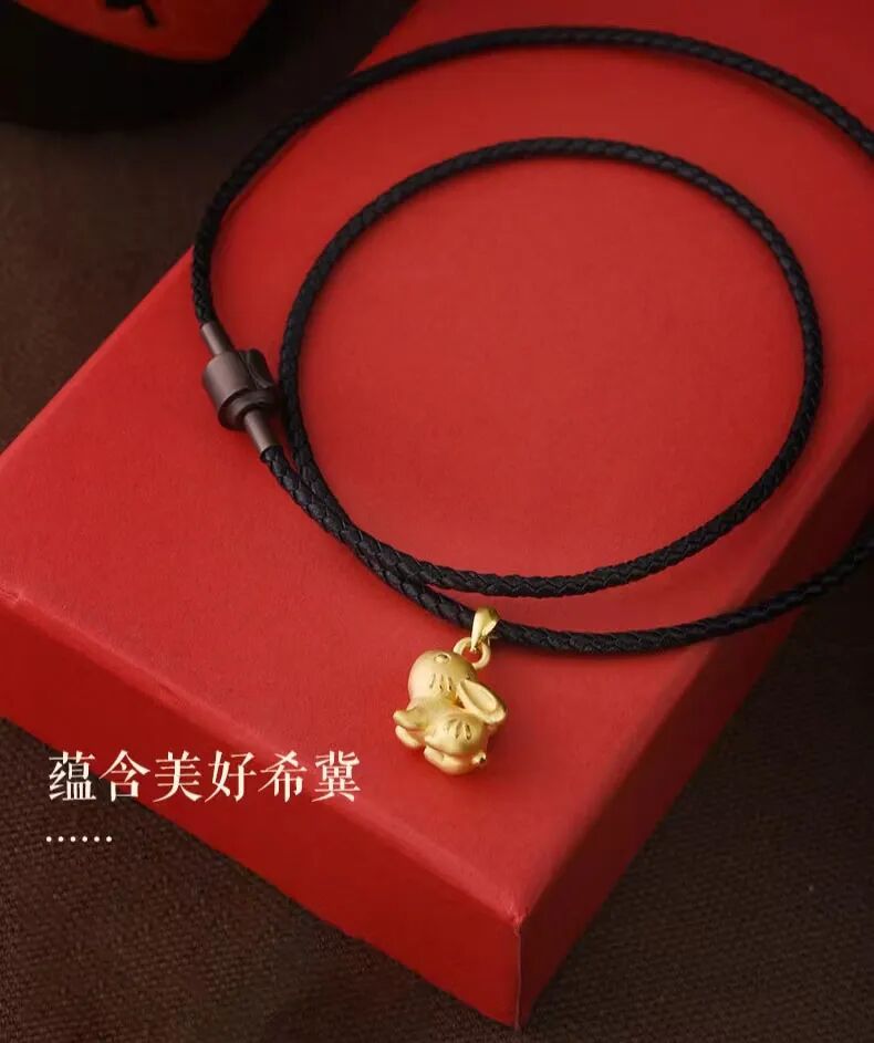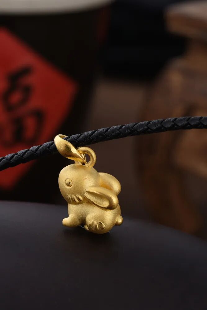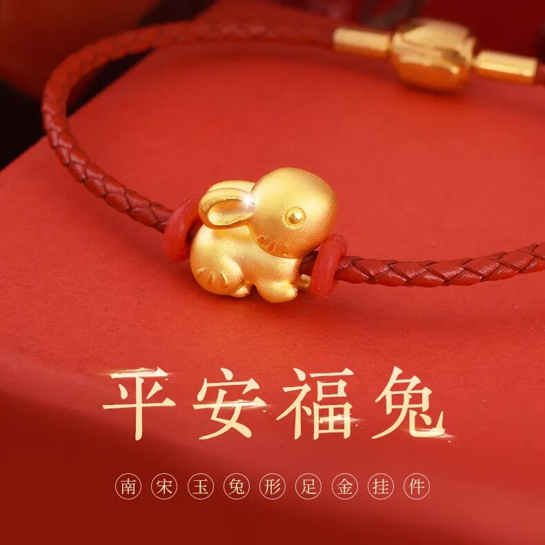 设计灵感来源于国家一级博物馆—南京市博物总馆馆藏南宋兔形玉饰件,是为百年品牌宝庆银楼与南京市博物总馆的联名款。作品汲取南宋玉雕之精髓,圆雕兔形,造型活泼,表情生动。金兔端坐,遥望月宫,寄托着人们对美好生活的向往。