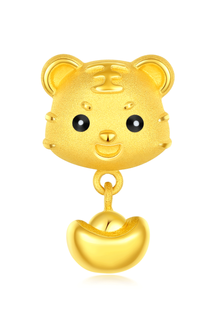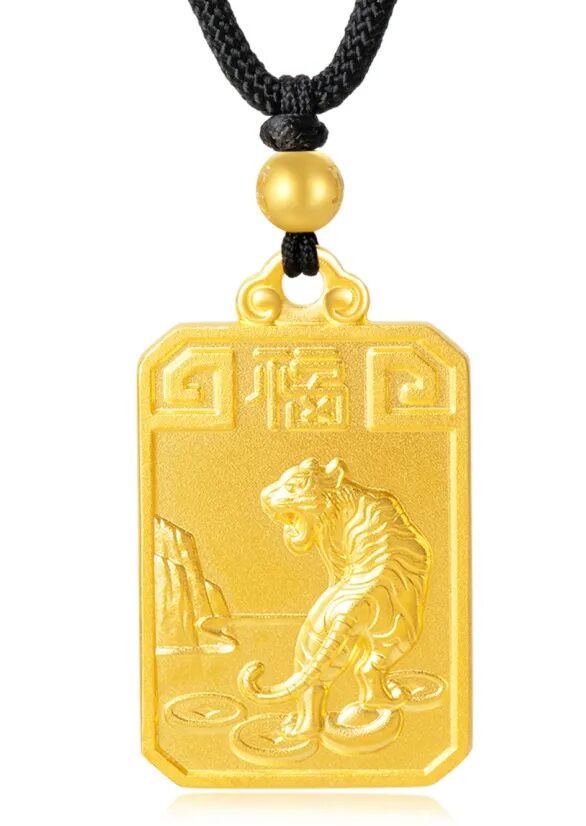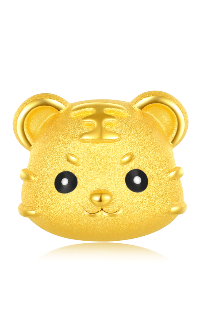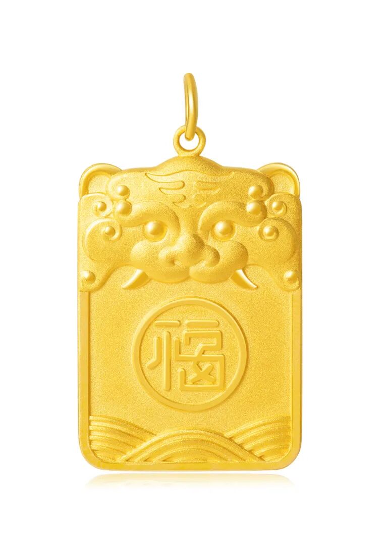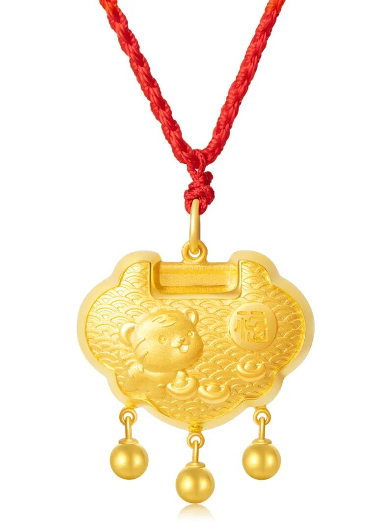 足金锁体一面浮雕萌虎图案