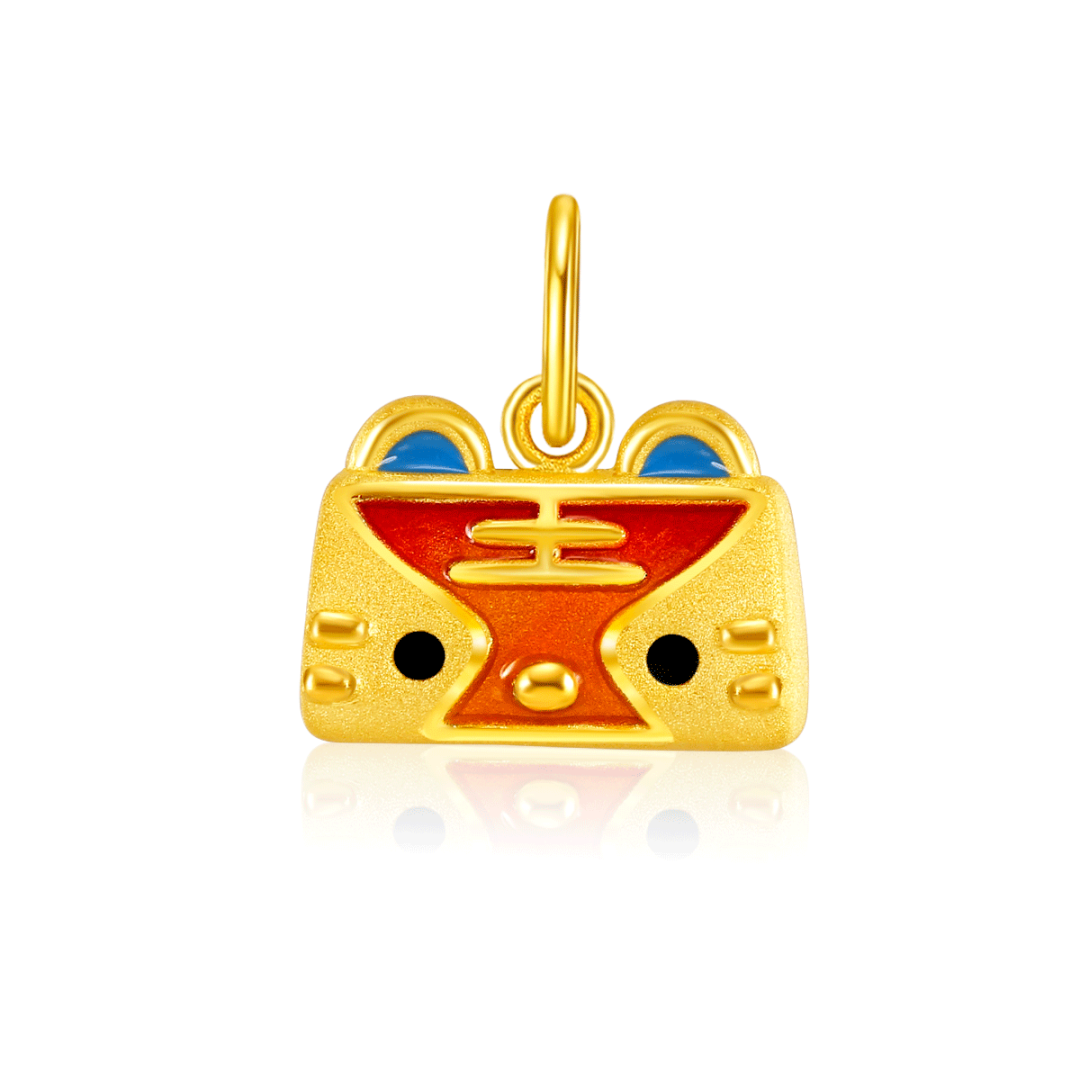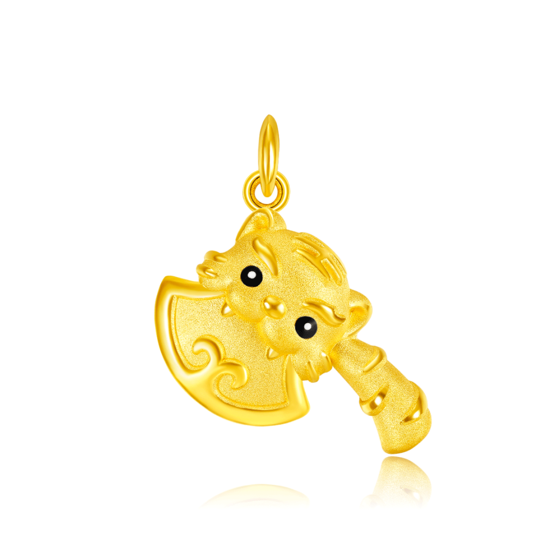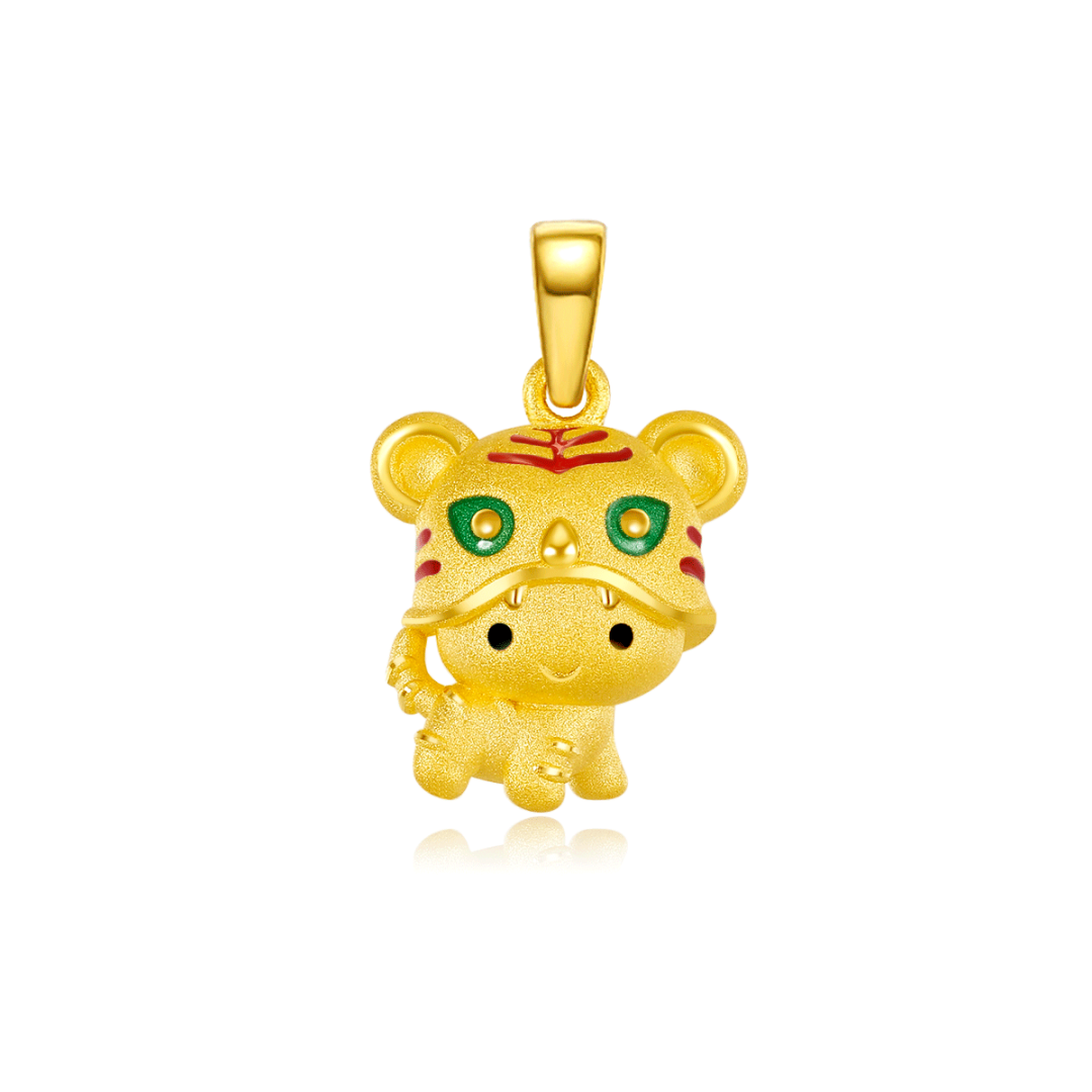 足金锁体一面浮雕萌虎图案
