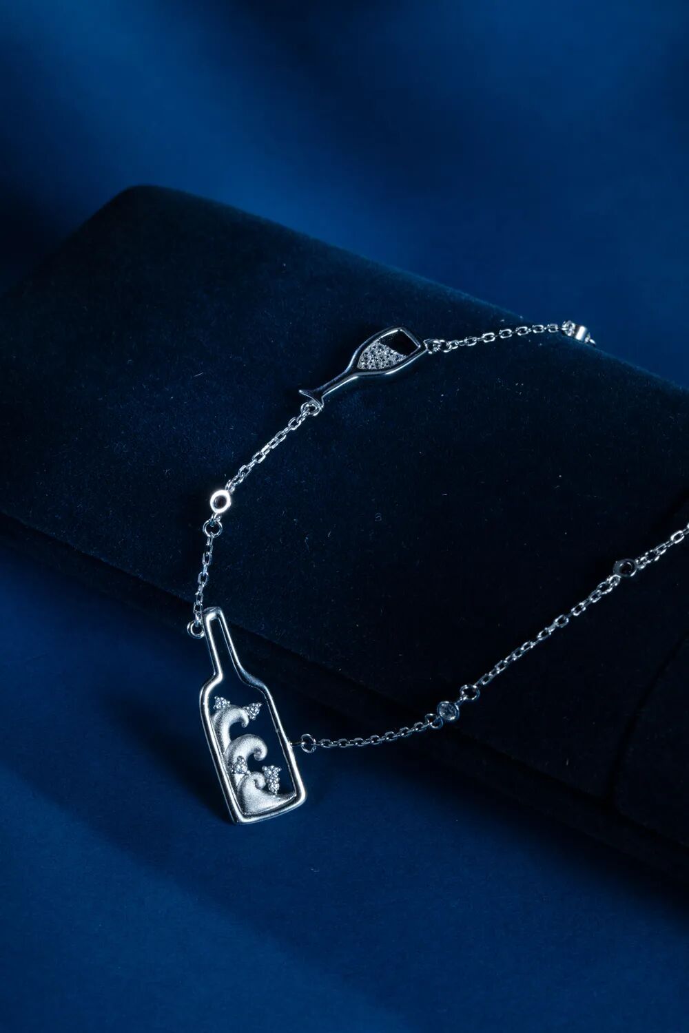 酒瓶中的浪花是在庄园内慢饮微醺时,每一个响亮的头衔都无法禁锢的自由的灵魂。以“一辈子”作为设计灵感加入酒杯造型,诠释出项链的优雅和别致。设计师将葡萄庄园里惬意的场景转化成浪漫自由的首饰系列。