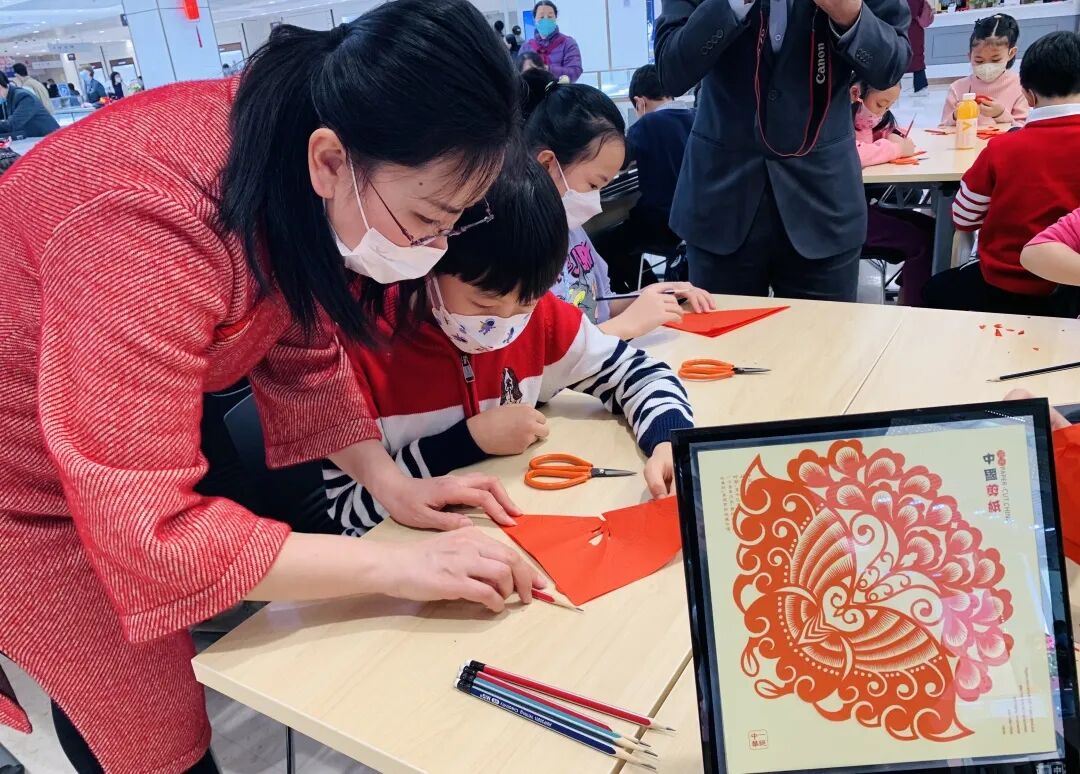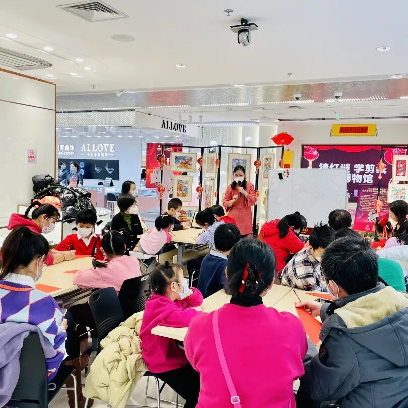 元宵喜乐,猜灯谜;非遗传承,学剪纸;拾光集印,乐今宵……多姿多彩的文化活动,更是吸引了广大消费者前来参加。猜灯谜活动于线上线下同时开展,官方微博、抖音联动线下门店,扫描猜灯谜游戏二维码即可参与活动,并有机会得宠粉好礼。北京菜百黄金珠宝博物馆特邀中国结艺传承人、非物质文化遗产剪纸项目代表传承人——倪巧凤老师带领大家感受剪纸艺术的魅力,传承非遗文化,其间于菜百总店、西单、大兴分店共开设四场课程。“集印令”打卡盖章活动此次在三家门店共开放18枚印章,其中有6枚贺岁版兔年印章、6枚博物馆特色印章以及6枚艺术展作品印章。