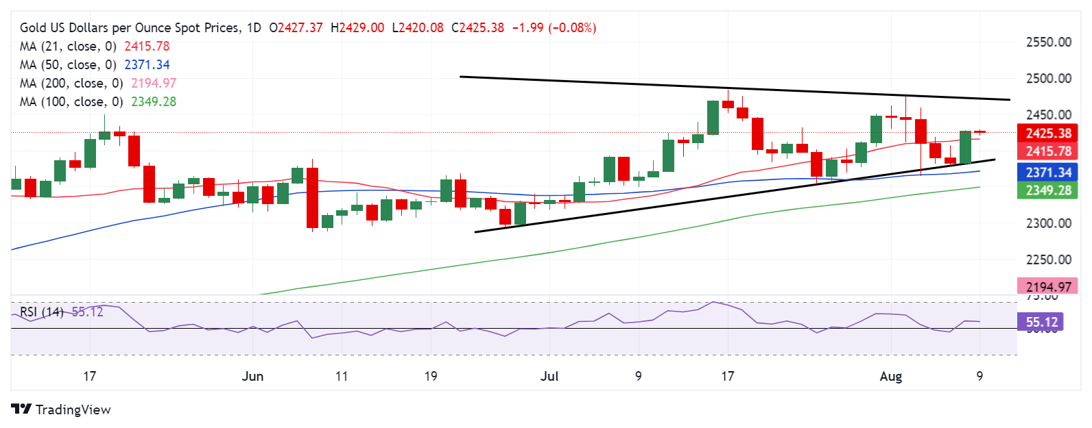 讯 周五(8月9日)欧市早盘,现货黄金位于2425美元/盎司附近。FXStreet高级分析师Dhwani Mehta最新撰文,对金价技术走势进行分析。