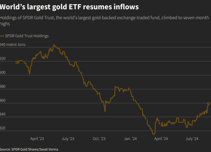 全球最大的黄金ETF——SPDR黄金信托基金的持仓量周一跃升至七个月来的最高水平,达到859吨。