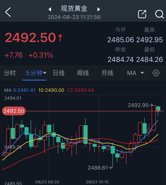 北京时间11:21,现货黄金报2492.50美元/盎司。