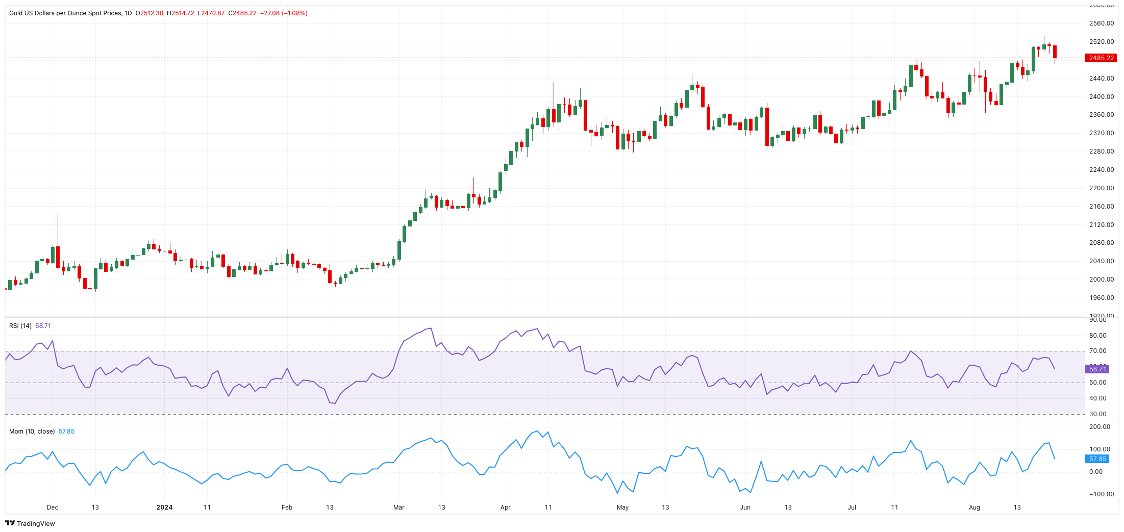 Piovano指出,市场的注意力仍集中在美联储主席鲍威尔在杰克逊霍尔的讲话上。金价在2530美元/盎司上方的纪录高位面临初始阻力。