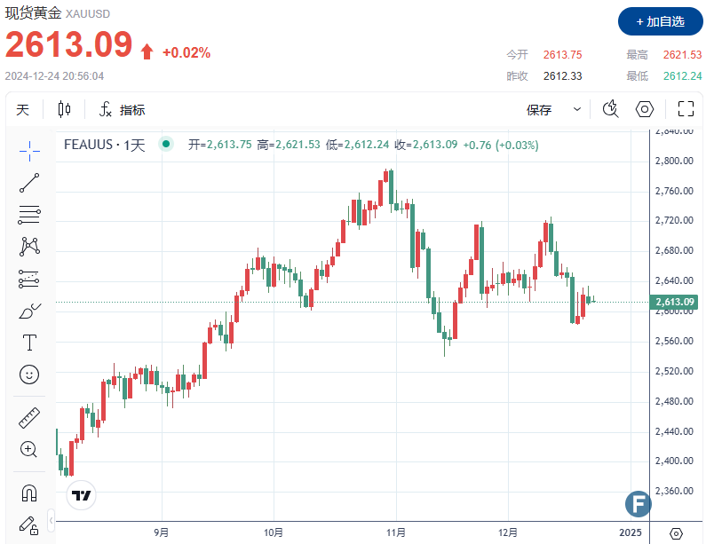 FX168财经报社(北美)讯 周二(12月24日),黄金价格在平静的假期交易中上涨后回落,而投资者的注意力集中在美联储明年的利率策略和当选总统唐纳德特朗普未来的关税政策上。