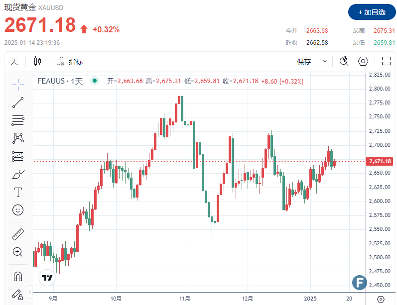 在生产者价格指数 (PPI) 数据公布后不久,现货金价出现小幅波动,现报2671.18美元/盎司。