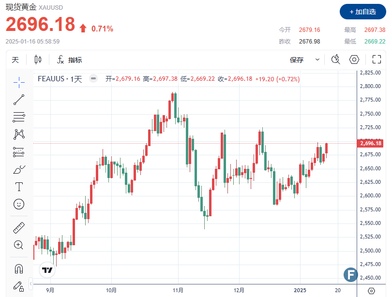 截至发稿,现货黄金现报2696.18美元/盎司。