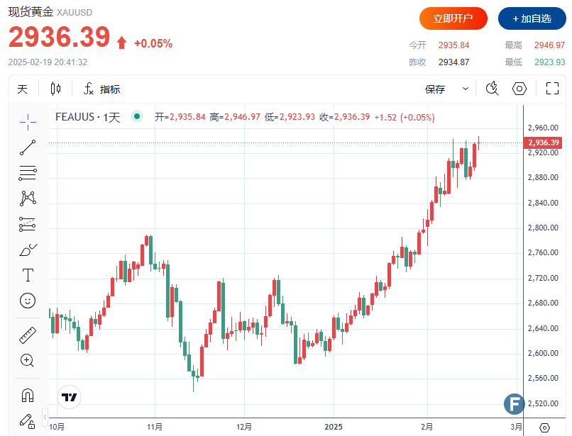 截至发稿,现货黄金(Spot Gold)上涨0.05%,报2,936.39美元/盎司,此前盘中曾触及2,946.97美元/盎司的历史最高水平。